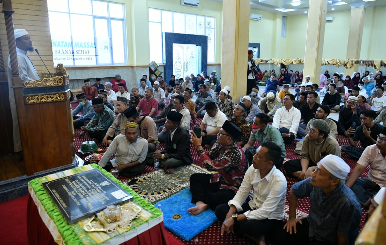 Gubernur Sulawesi Selatan, Andi Sudirman Sulaiman meresmikan Masjid Darul Falah Jalan Daeng Regee, Kelurahan Rappojawa, Makassar.