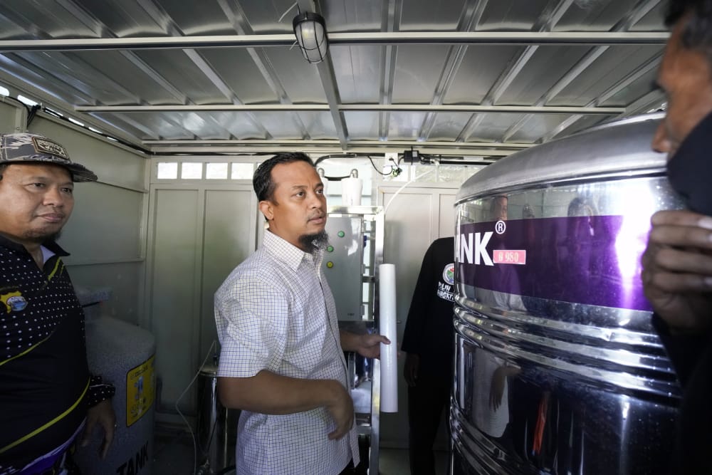 Di sana, Gubernur termuda se Indonesia itu, meninjau fasilitas teknologi pengolahan air siap minum (arsinum).