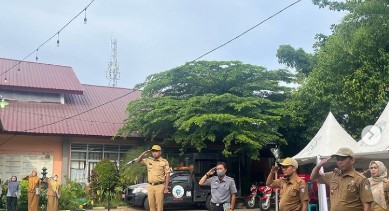 Sekcam Panakkukang Abdul Muis menjadi pembina upacara pada pelaksanaan upacara bendera di Halaman Kantor Camat Panakkukang, Senin (31/10/2022) pagi.