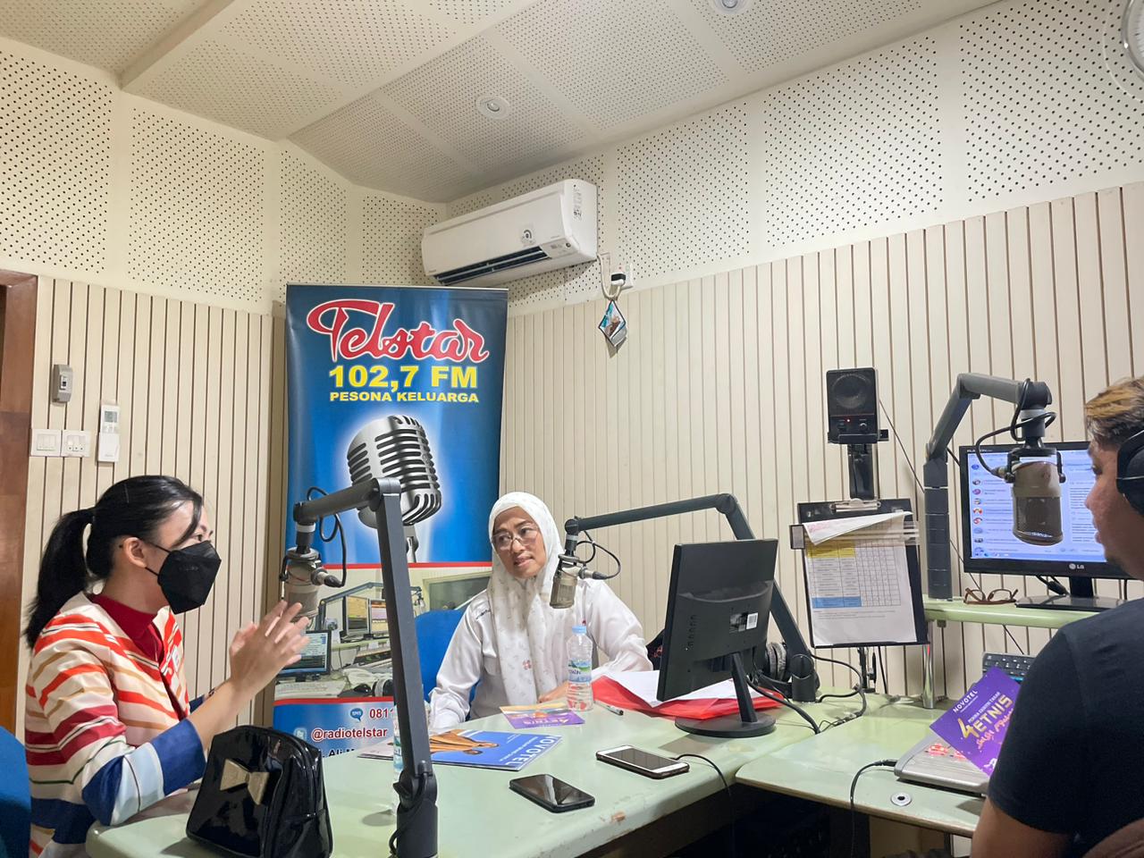 Mewakili Kepala Dinas Pariwisata Kota Makassar, Kepala Bidang Promosi dan Pemasaran, Yulianti berbagi informasi mengenai potensi pariwisata Kota Makassar khususnya disektor perhotelan dan restoran jelang momen Natal dan Tahun Baru 2023. Selasa, 14 Desember 2022 di Studio Radio Telstar 102,7 FM Makassar.