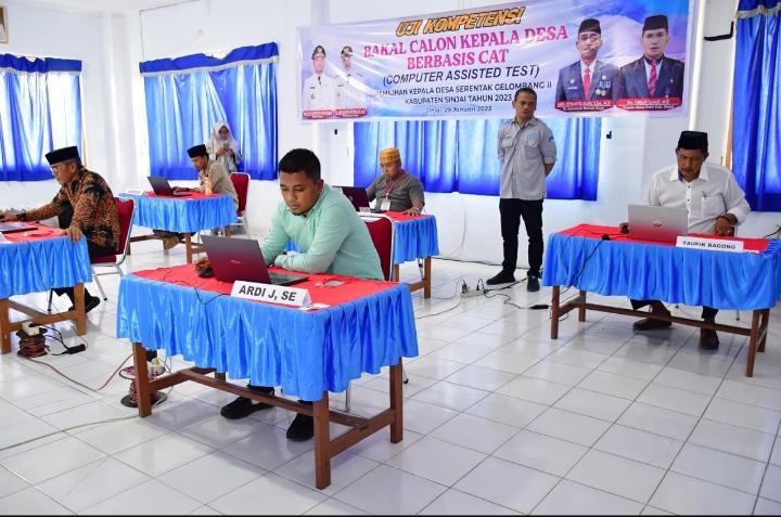 Sebanyak 5 bakal calon kepala desa (Balon Kades) dari dua desa mengikuti tes kompetensi berbasis Computer Assisted Test (CAT).