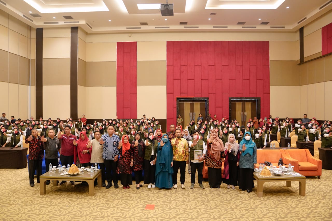 Gubernur Sulawesi Selatan, Andi Sudirman Sulaiman didampingi Ketua TP-PKK Sulsel, Naoemi Octarina dan Kadis Kesehatan Sulsel, Rosmini Pandin melepas 120 Tenaga Pendamping Gizi Desa (TPGD) dalam Program Aksi Stop Stunting Tingkat Provinsi Sulawesi Selatan di Hotel Dalton, Kamis, 9 Februari 2023.