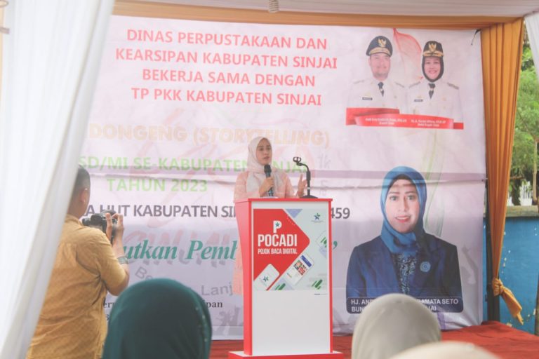 Bunda Literasi, Andi Nurhilda Daramata Seto buka lomba mendongeng (Storytelling) yang diselenggarakan Dinas Perpustakaan dan Kearsipan Kabupaten Sinjai bekerja sama dengan Tim Penggerak Pemberdayaan dan Kesejahteraan Keluarga (TP-PKK) Kabupaten Sinjai. Kamis, (23/02/2023).