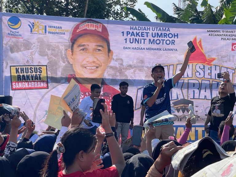Ketua DPRD Makassar, Rudianto Lallo kembali menggelar jalan sehat anak rakyat khusus warga Kecamatan Kepulauan Sangkarrang yang dilaksanakan di Pulau Barrang Lompo, Minggu (19/3/2023).