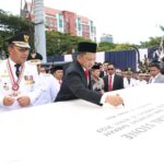 Kadisnaker mendampingi Bupati Cirebon setelah Upacara Puncak Hari Otonomi Daerah (OTDA) ke -XVII (27 Tahun) di anjungan City Of Makassar yang berlangsung meriah.