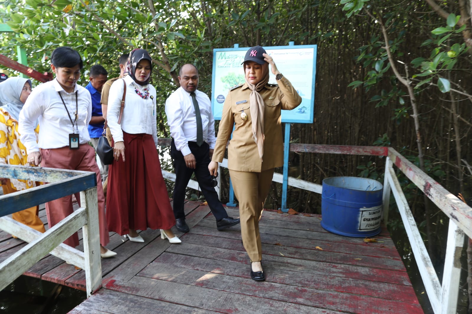 klikkiri.co – Wakil Wali Kota Makassar, Fatmawati Rusdi didampingi Kepala Dinas Pariwisata Kota Makassar, Muhammad Roem, melakukan peninjauan secara langsung di wisata Mangrove Lantebung, Senin (5/06/2023).