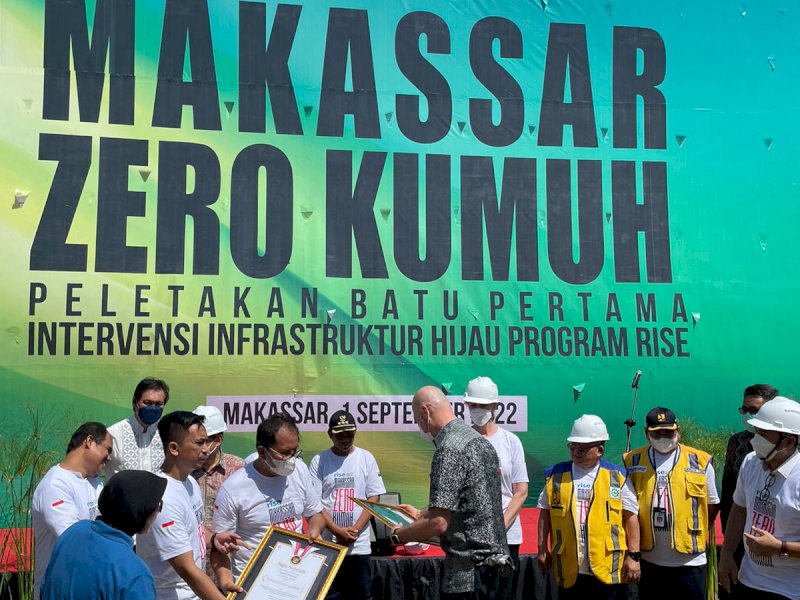 Pemerintah Kota (Pemkot) Makassar dan Pemerintah Australia melakukan peletakan batu pertama intervensi infrastruktur hijau program Rise di Salodong, Kelurahan Untia, Kecamatan Untia, Kamis (1/9/2022).