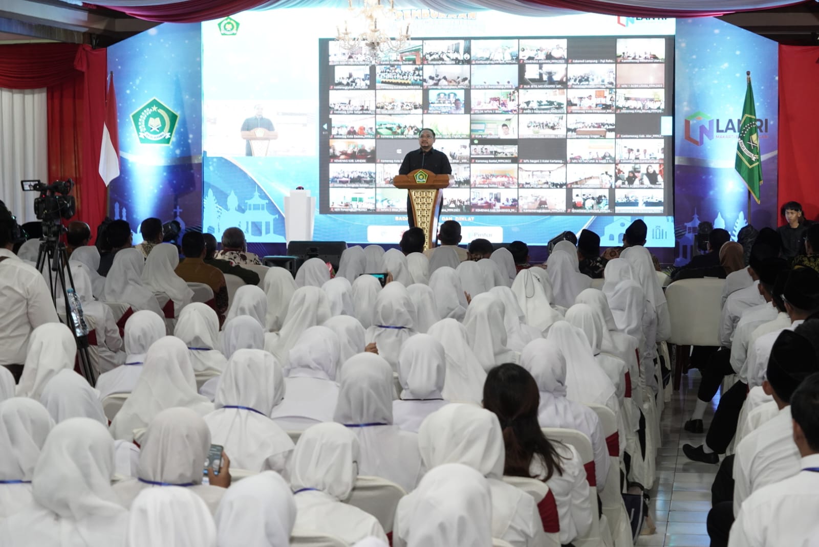 Tampak hadir Pejabat Eselon I, II Kemenag, Para Staf Khusus, Staf Ahli, dan Tenaga Ahli Menteri Agama, para Rektor PTKIN se Jatim, Kakanwil Kemenag Provinsi Jawa Timur dan jajarannya.