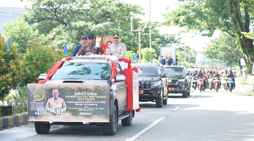 Arak-arakan piala Adipura dibawa mengelilingi Kota Palopo dan finish di halaman belakang Kantor Walikota Palopo.