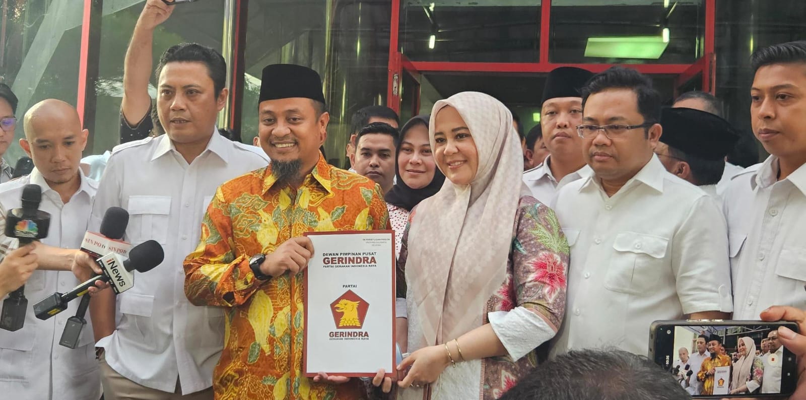 Penyerahan dilakukan langsung oleh Sekjen Gerindra, Ahmad Muzani kepada pasangan Andalan Hati itu di Kantor DPP Partai Gerindra, Jum’at 23 Agustus 2024.