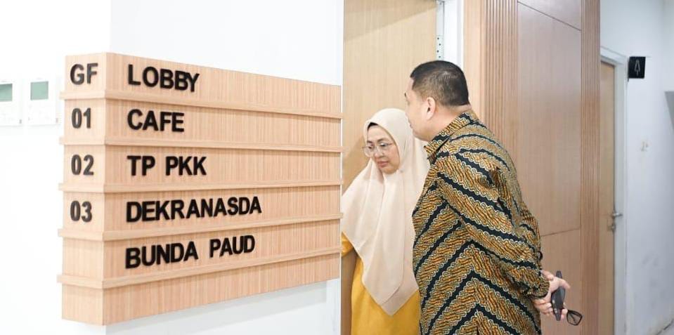 Munafri bersama Melinda meninjau kondisi gedung berlantai empat yang telah digunakan sebagai Kantor TP PKK, Dekranasda, dan Pokja Bunda PAUD sejak tahun lalu.