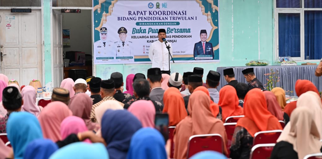 Disdik Sinjai Serahkan 30 Paket Sembako pada Rakor Triwulan I yang Dirangkai Buka Puasa Bersama