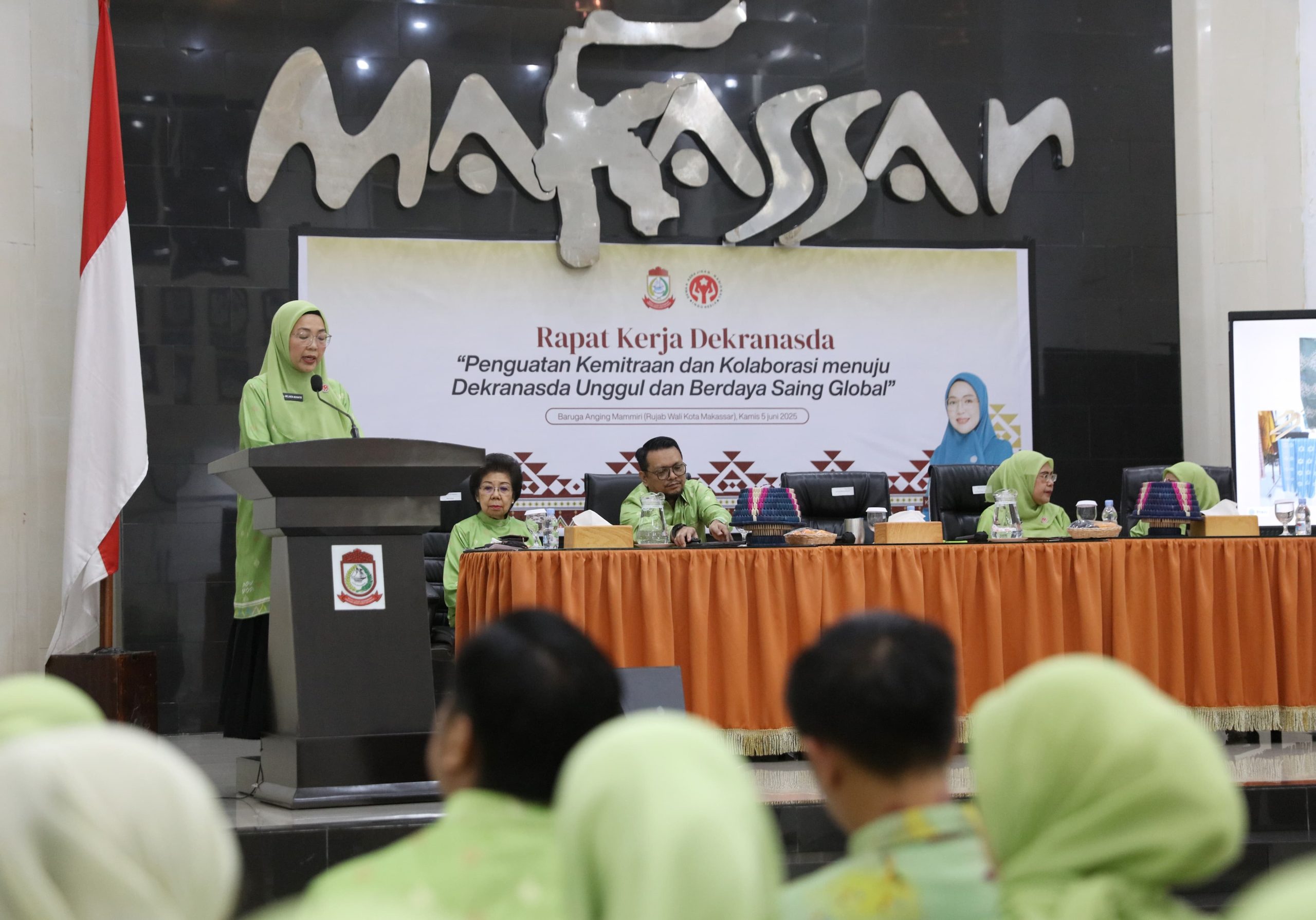 klikkiri.co — Ketua Dewan Kerajinan Nasional Daerah (Dekranasda) Kota Makassar, Melinda Aksa membuka dan memimpin Rapat Kerja Dekranasda Tahun Anggaran 2025 di Baruga Anging Mammiri, Kamis (5/6/2025).