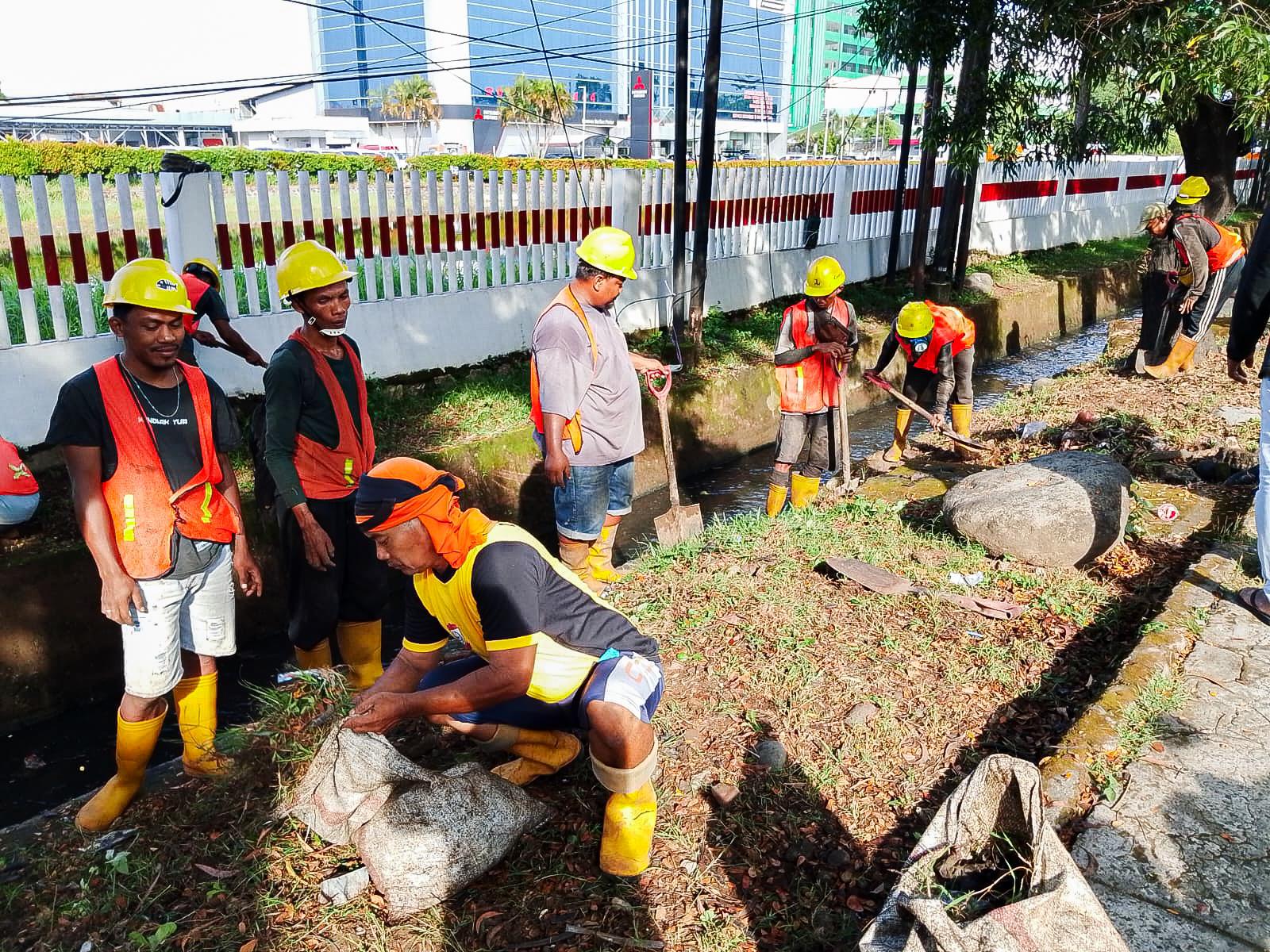 Sebagai garda terdepan dalam aksi bersih-bersih tersebut, Dinas PU Kota Makassar menurunkan sebanyak 278 personel Satuan Tugas Drainase, yang tersebar di sepanjang jalur depan Kantor Gubernur. Mereka bahu-membahu dengan personel dari BBWS dan BBPJN untuk membersihkan saluran air dari sampah, sedimen, dan berbagai material penghambat aliran air lainnya.