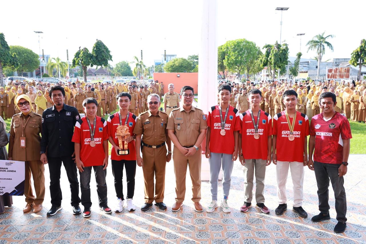 Atas pencapaian tersebut, Wakil Bupati Andi Edy Manaf menyerahkan ulang penghargaan atau trophy kepada perwakilan atlet Tim Bulukumba United U-16 di sela Apel Gabungan OPD, di halaman Kantor Bupati Bulukumba, Senin, 13 April 2026.